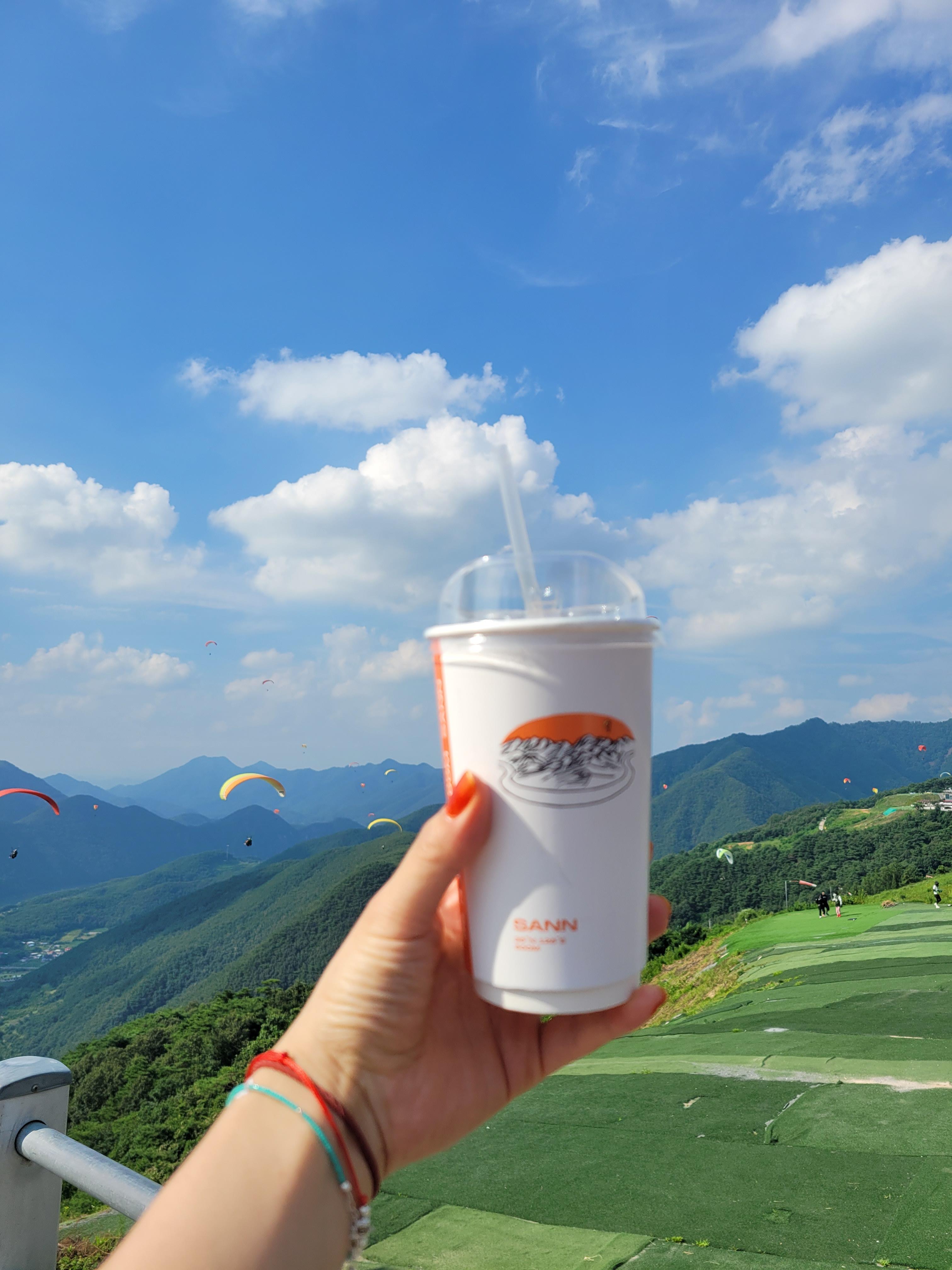 카페산에서 즐기는 단양의 탁 트인 풍경