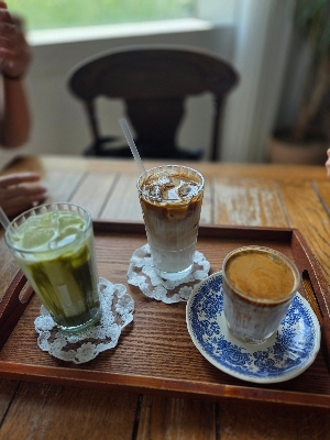 야외 정원에는 흰색과 브라운 톤이 어우러진 아치형 포토존이 있으며, 그 위를 수국과 덩굴식물이 감싸고 있어 액자 속에 들어간 듯한 사진이 나옵니다. 카페 내부 창가 좌석도 인기 있는 촬영 포인트입니다. 창문 밖으로 보이는 수국 뷰와 커튼 사이로 들어오는 자연광이 은은한 분위기를 만들어, 커피를 들고 있는 모습만으로도 화보 같은 컷이 완성됩니다. 또한 실버커피는 계절마다 포토존 구성을 조금씩 바꿉니다. 여름에는 수국을 중심으로, 가을에는 국화와 코스모스, 겨울에는 크리스마스 오너먼트와 조명이 주인공이 됩니다. 덕분에 매년 같은 시기에 방문하더라도 새로운 사진을 찍을 수 있는 재미가 있습니다.
