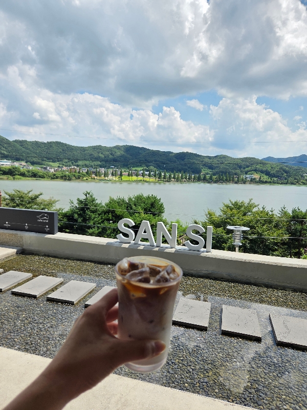 이런 신정호 근처에 위치한 산시카페는 산책을 마치고 잠시 쉬어가기 좋은 최적의 장소였습니다. 호수 주변을 거닐다가 자연스럽게 들르기 좋은 동선이라 접근성도 좋았어요. 무엇보다 신정호 풍경과 어우러진 카페라서, 단순한 ‘카페 방문’이 아니라 작은 여행 같은 경험을 할 수 있었습니다.